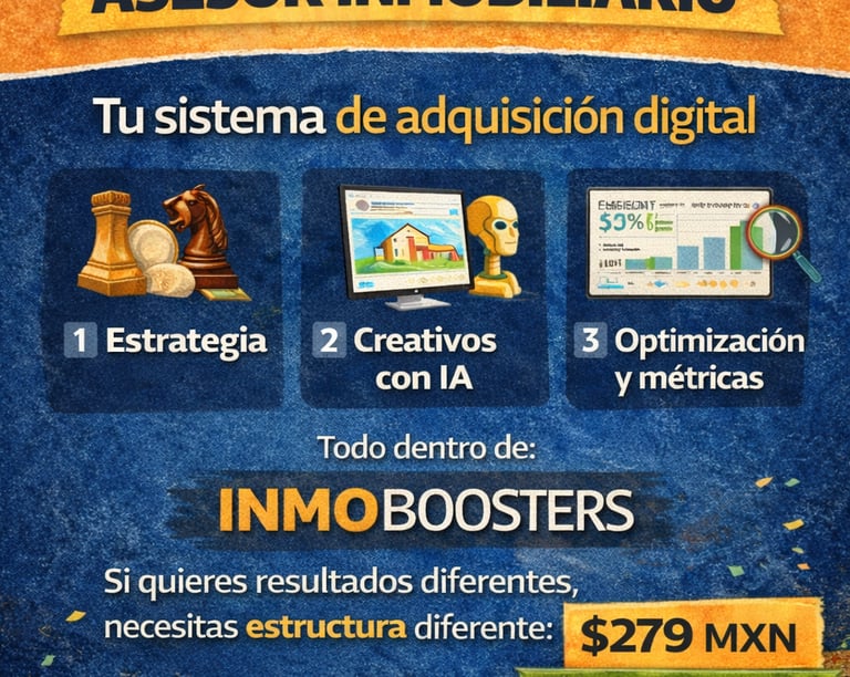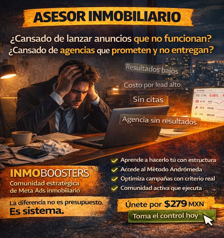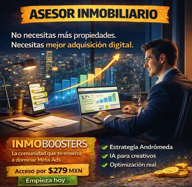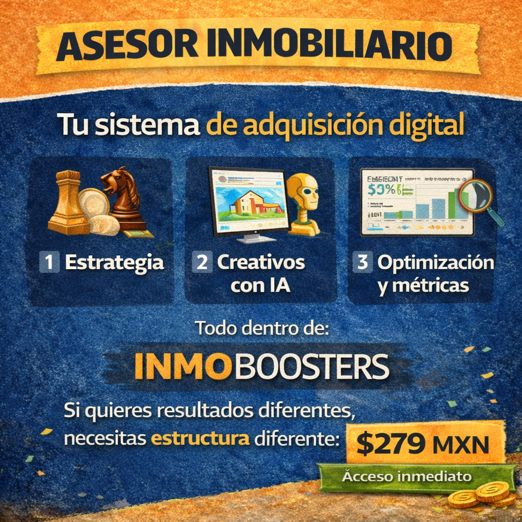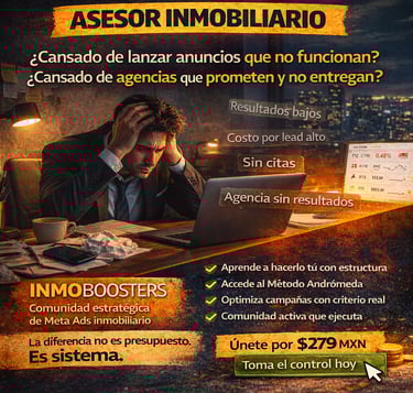InmoBoosters es la comunidad estratégica diseñada para asesores y brokers que quieren dejar de improvisar en publicidad y comenzar a ejecutar con estructura.